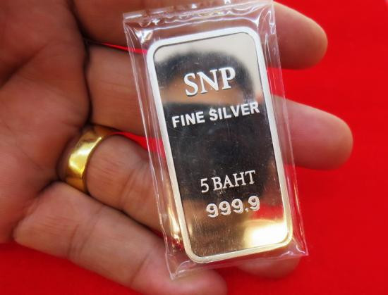 เงินแท่งบริสุทธิ์ 999.9% ขนาด 5 บาท หรือ FINE SILVER 999.9% น้ำหนัก 5 บาท ใหม่ๆเลยครับ |