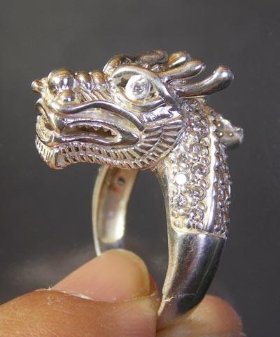 แหวนเงินแท้หัวแหวนเป็นเพชรพญานาคสีแดงตัวเรือนพิเศษปรับไซด์ได้ในตัว |