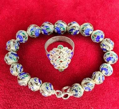 สร้อยข้อมือและแหวนทำจากเงินแท้ลงยา งานสุโขทัย |