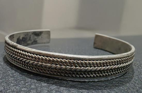 กำไล เงินแท้ กว้าง 10 มิล หนัก 23.45 กรัม ลายเชือกถักงานวินเทจ สวยๆ ครับ |