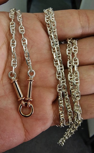 "เคาะเดียว"สร้อยคอเงิน 92.5 มือ 2 สภาพสมบูรณ์ไม่ขาดไม่หักเชื่อมทุกข้อลายแข็งแรง น้ำหนัก 15.7 กรัม |