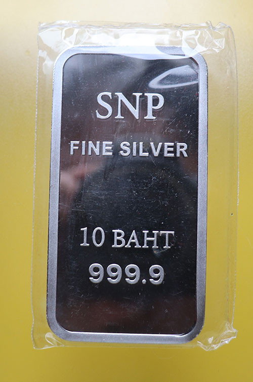 เงินแท่งขนาด 10 บาท หรือ FINE SILVER 999.9% น้ำหนัก 10 บาท ใหม่ๆเลยครับ น่าสะสม |