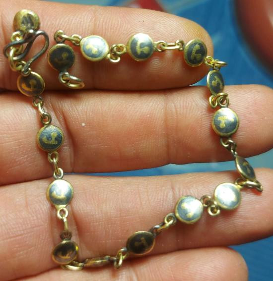 **ÇÑ´ã¨**ÊÃéÍ¢éÍÁ×ÍËÔ¹Á§¤Å·ÕèÃÇÁËÔ¹ä·à¡ÍÃìÍÒ (Tiger's Eye), â͹ԡ«ì´Ó (Black Onyx), ¤ÃÔʵÑÅãÊáÅÐ äËÁ·Í§à¢éÒ´éÇ¡ѹ àÊé¹ÂÒÇ 22 cm. ¨Ò¡ÍàÁÃÔ¡Ò |