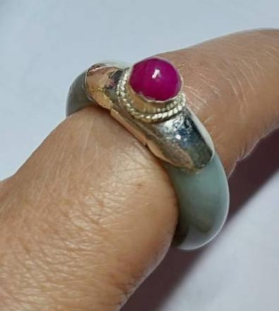 ***วัดใจ***แหวนหยก จับเงินแท้ หัวแหวน ทับทิม*** เส้นผ่าศูนย์กลาง 2 ซม. |