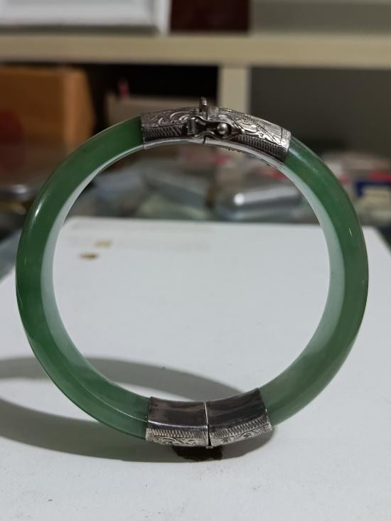 กำไลหยกแท้จากเมืองจีน [ งานสั่งทำทุน 6,000 หุ้มเงินแท้ 93% ] พร้อมใบยิงเปอร์เซ็นต์ ความโตของกำไลหยก 13 มม.เส้นผ่าศูนย์กลาง 6 ซม.ขนาดวง 7 ซม. ตะขอแบบกดคลิปล็อคสวยงามมากครับ |