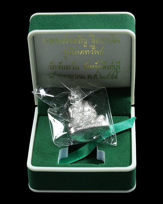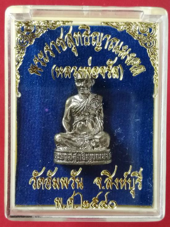 รูปหล่ออุดกริ่ง เนื้อนวโลหะ หลวงพ่อจรัญ วัดอัมพวัน สิงห์บุรี ปี ๒๕๔๐ พร้อมกล่อง