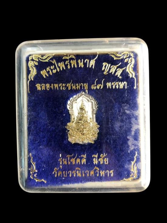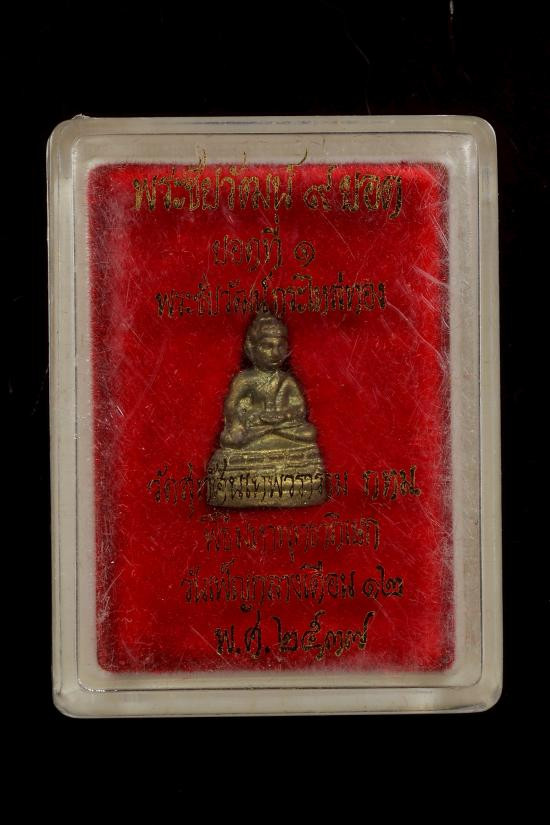 พระพิมพ์ประภามณฑล กริ่งมงคลเทพประสิทธิ์ ปลุกเสกโดย พระอาจารย์ต้อม วัดท่าสะแบง จัดสร้างโดย คุณ อั๋น โอกิ มีมวลสารวัตถุมงคล พรหมประสิทธิ์ เทพบันดาลทรัพย์ มงคลเทพประสิทธิ์ หมายเลข ๘๔๓๔ พร้อมตลับชุบทองลงย |