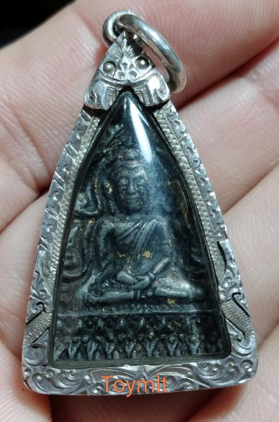 พระพุทธชินราช หลวงพ่อโม วัดสามจีนเลี่ยมเงินพร้อมใช้พร้อมบัตร คลาสสิกลงรักปิดทองมาเข้มขลัง |