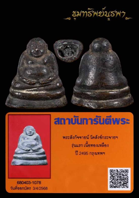 พระอุปคุต รุ่น 3 หลวงปู่ไม อินทสิริ วัดป่าหนองช้างคาว จ.อุดรธานี เนื้อทองเเดง ตอกโค๊ต |
