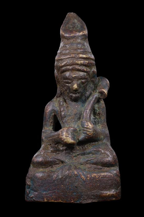 พระอุปคุต พิมพ์หมวกฤาษี ถือดอกบัว หล่อโบราณ เนื้อทองผสม มีอุดกริ่งใต้ฐาน |
