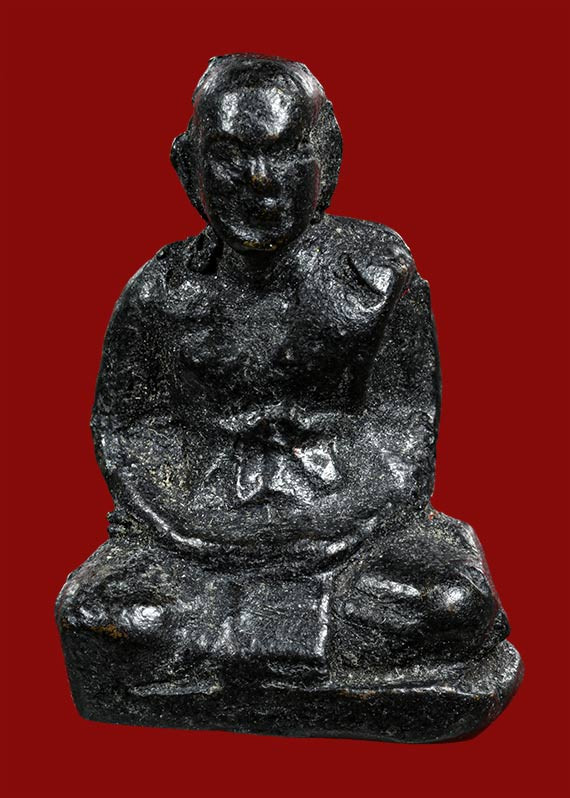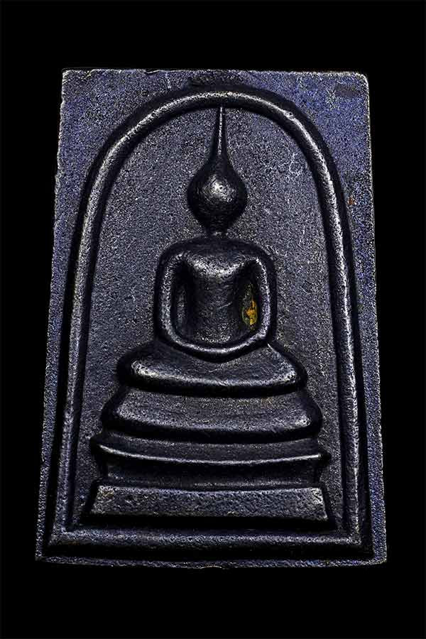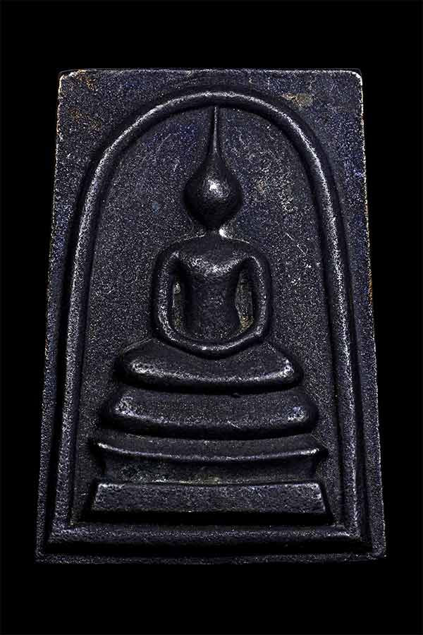 พระพุทธ เนื้อตะกั่ว ผสมปรอท ฝังเขี้ยวหมาป่า ทาบรอน ปี 2443 หลวงพ่อดำ วัดกุฎี ปราจีนบุรี |