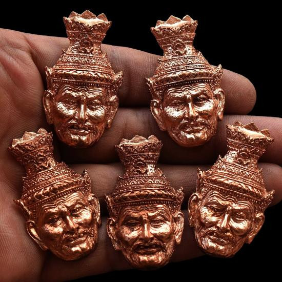 ชุด 5 องค์...เศียรปู่ดวงดีทวีโชค เนื้อทองแดง ด้านหลังฝังตะกรุดอุดผงมวลสาร ปี 2558 หลวงปู่เฉลิม วัดบุญนาคประชาสรรค์ จ.สมุทรสงคราม พร้อมใบฝอยเดิมจากวัด |