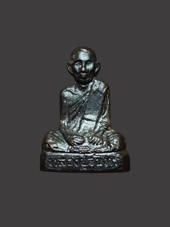 A816.รูปเหมือนปั๊มหลวงปู่จันทร์ วัดทุ่งเฟื้อ กริ่งเหล็กไหลเนื้อทอ งแดงเถื่อน รมดำ ปี๒๕๒๘ องค์ที่2 (เคาะเดียวเเดง) |