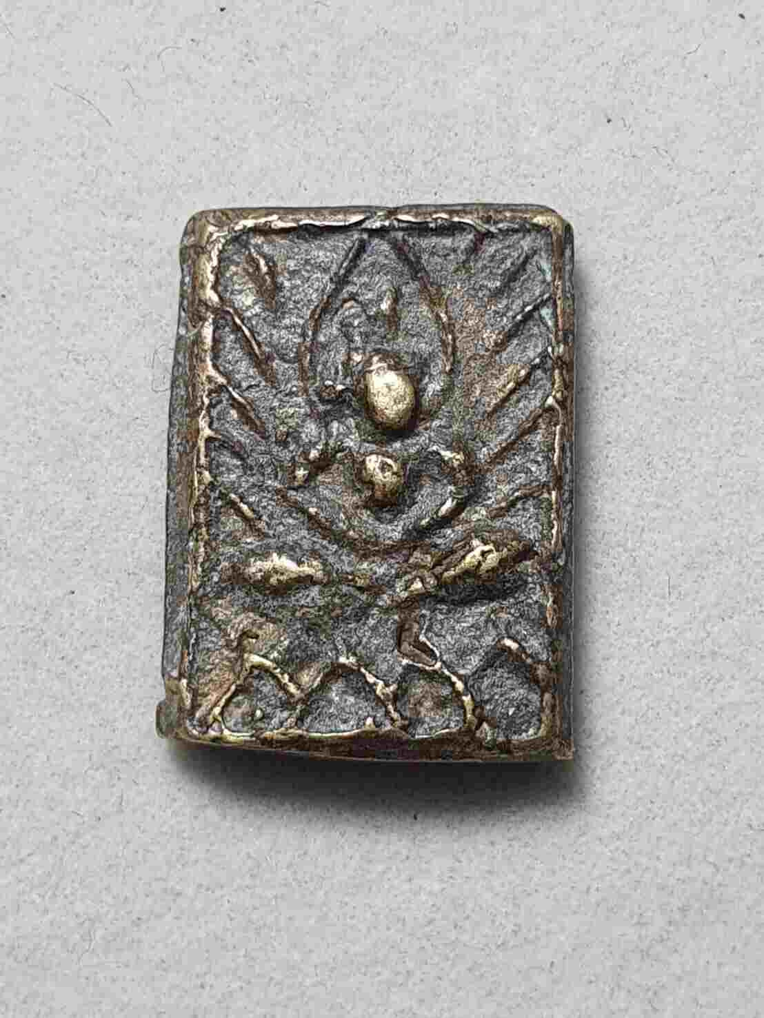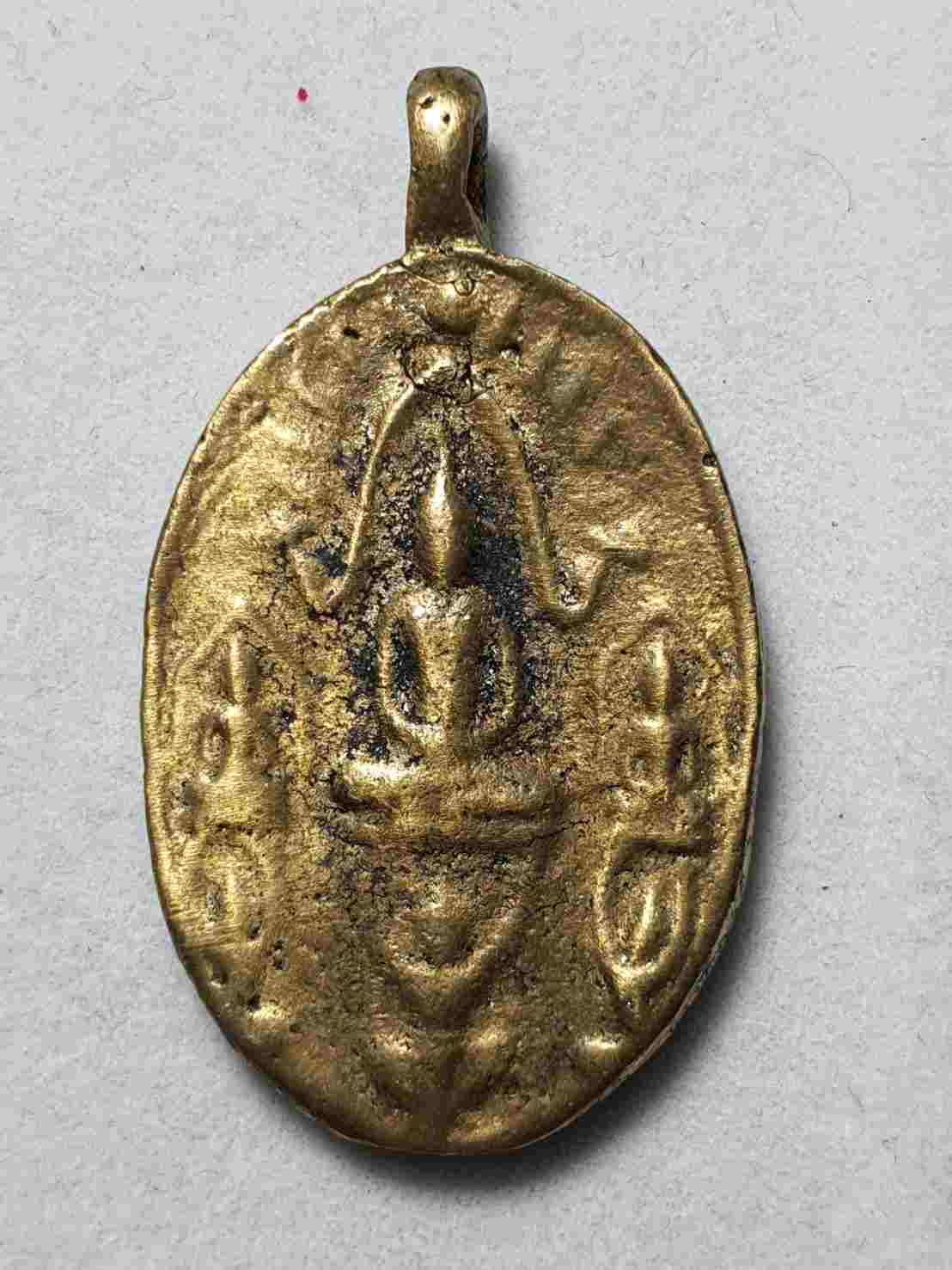 เหรียญหล่อเนื้อตระกั่วหลังฝั่งตะกรุด พระมีอายุเก่าๆกรอบทองไมคอลได้มาแบบนี้ครับ คลิกที่ค้อน |