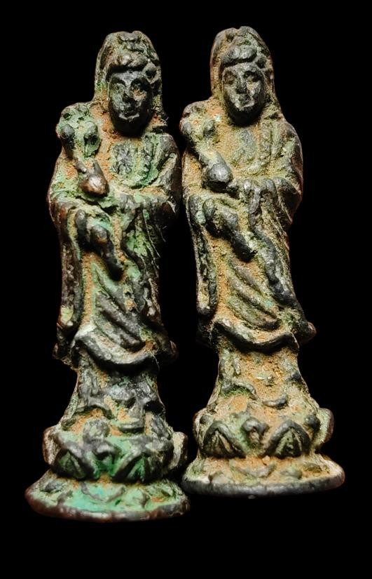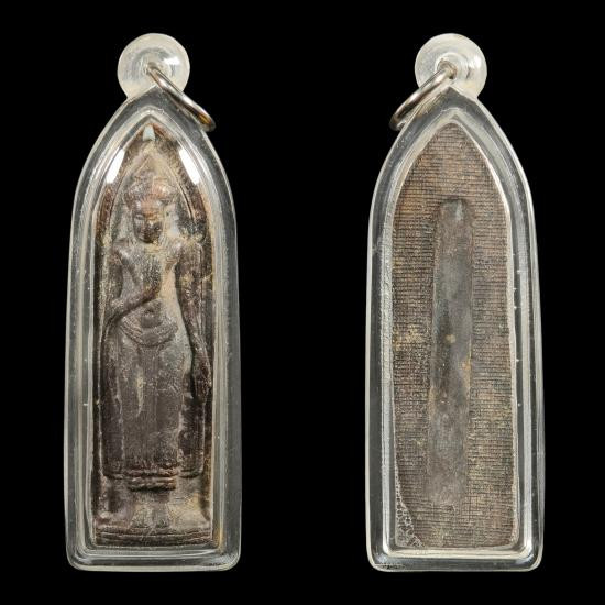 พระลีลา หลวงพ่อโบ้ย วัดมะนาว พิมพ์สองหน้า เนื้อทองเหลือง ปี 2473 จ.สุพรรณบุรี + บัตร g pra ครับ |