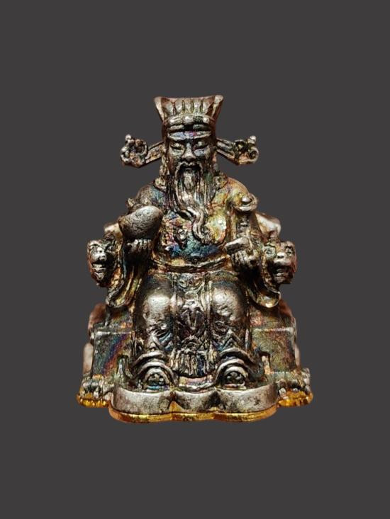 A474.รูปหล่อแก้ชง เทพเจ้าไท่ส่วยเอี้ย(เทพเจ้าคุ้มครองดวงชะตา) เนื้อเงินพ่นทราย กล่องเดิม(กล่องชำรุดตามรูป) เคาะเดียวเเดง |