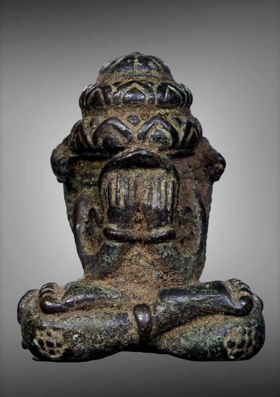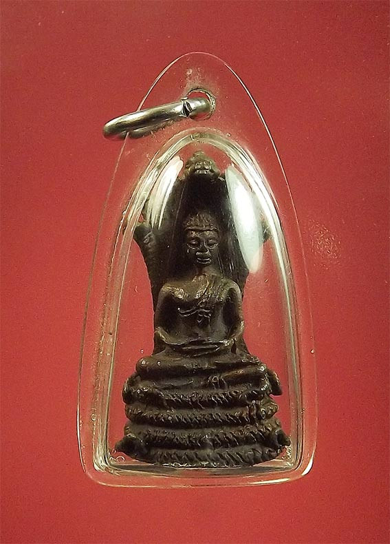 พระอุปคุตถือดอกบัว ปางนาคปรก 3 เศียร ศิลปะสวยงาม เนื้อสัมฤทธิ์เก่า |
