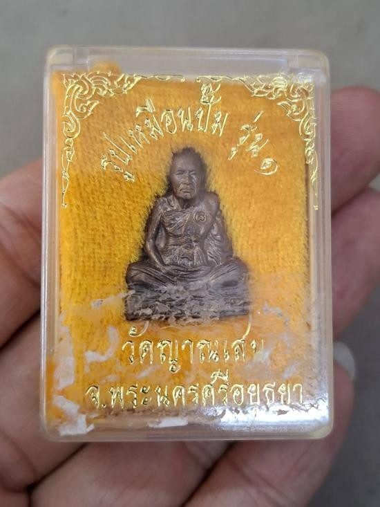 รูปหล่อ หลวงพ่อชื้น วัดญาณเสน จ.อยุธยา ปี 39 เนื้อตะกั่ว กล่องเดิม |