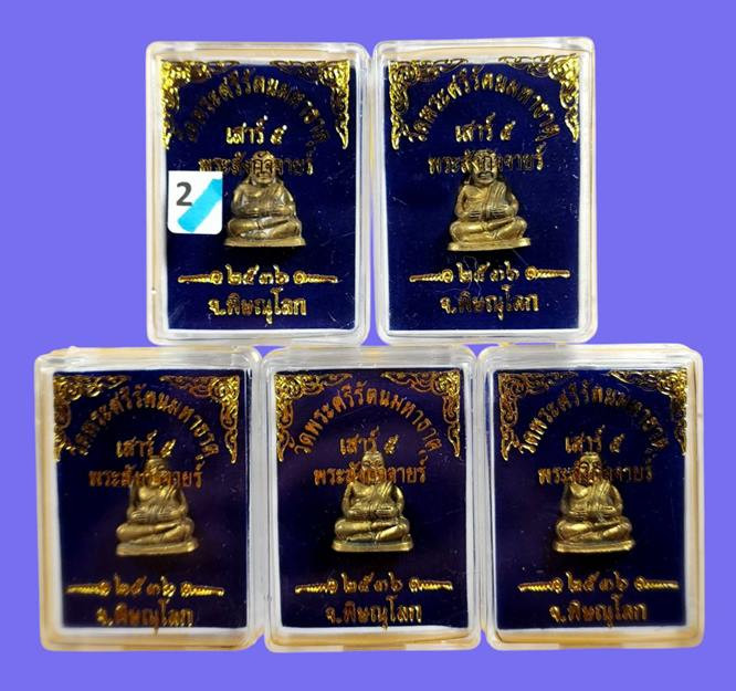 ( 5 องค์ ) พระสังกัจจายน์มหาลาภ เสาร์5 ปี 2536 เนื้อทองฝาบาตร วัดพระศรีรัตนมหาธาตุ จ.พิษณุโลก โค๊ตอกเลา 2 |