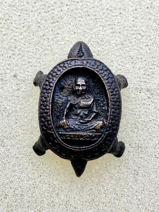 เต่าหล่อหลวงพ่อยิด วัดหนองจอก จ.ประจวบคีรีขันต์ เนื้อโลหะรมผิว |