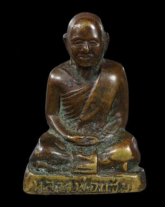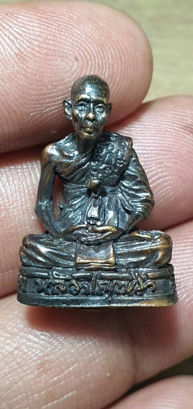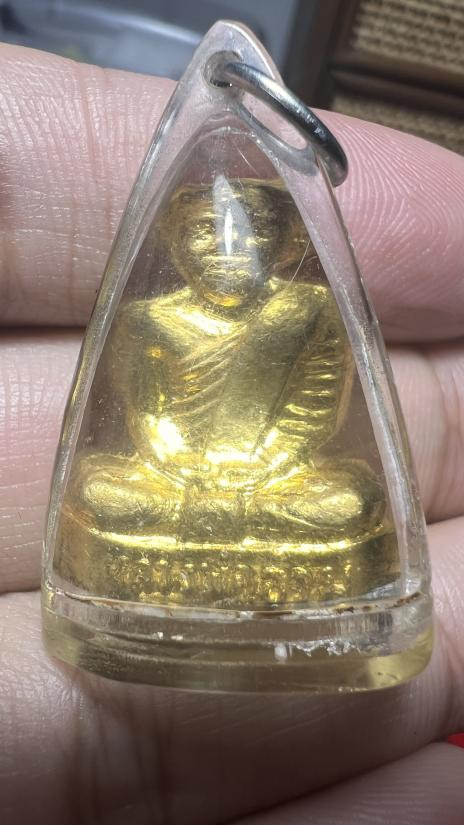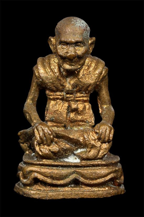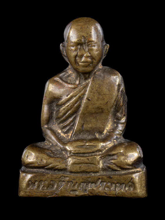 รูปหล่อหลวงพ่อเปลี้ย วัดชอนสารเดช จ.ลพบุรี รุ่นสร้างกำแพง ปี 2539 เนื้อทองเหลือง อุดกริ่ง |
