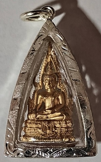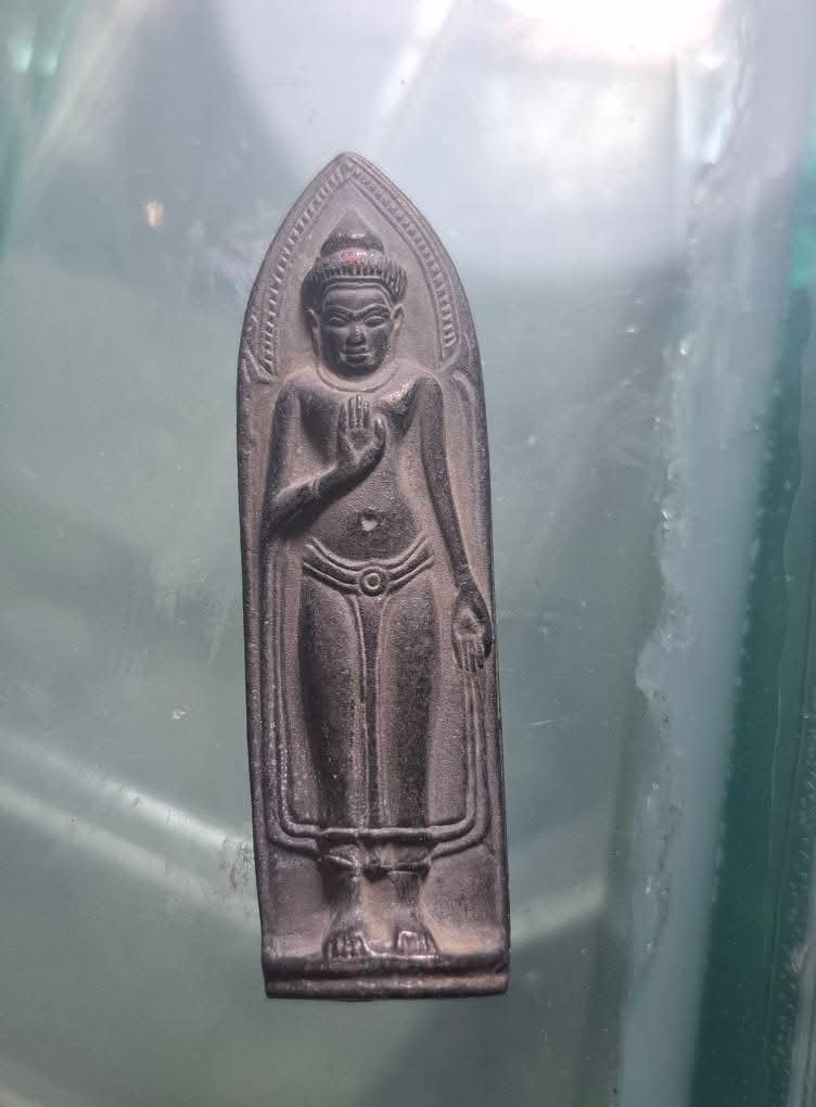 พระพุทธฝังเขี้ยวหมาป่า เนื้อชินตะกั่ว หลวงพ่อดำ วัดบางกุฎีทอง เลี่ยมพลาสติกพร้อมใช้ |