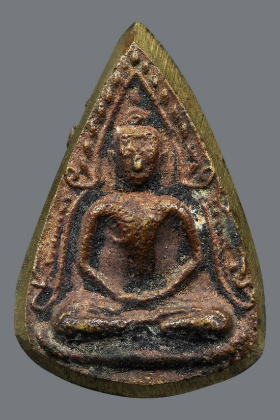 หล่อโบราณ พระพุทธชินราชใบสาเก เนื้อทองเหลือง เก่า |