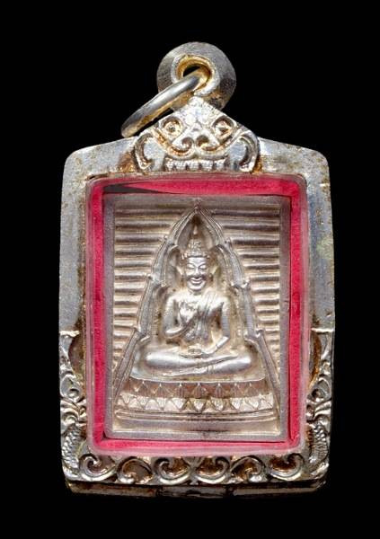 พระของขวัญ รุ่นซื้อที่ดินถวาย ปีพ.ศ. ๒๕๓๔ เนื้อเงินเลี่ยมตลับ |