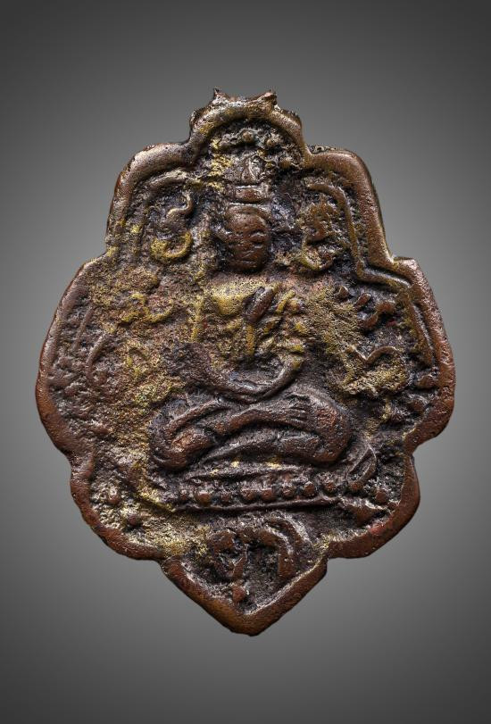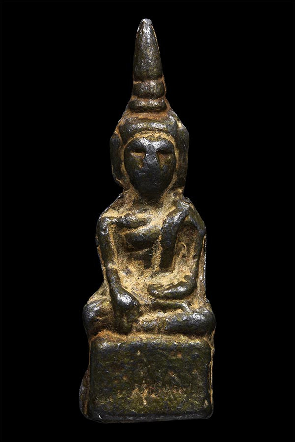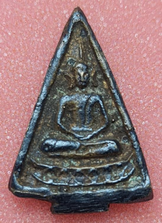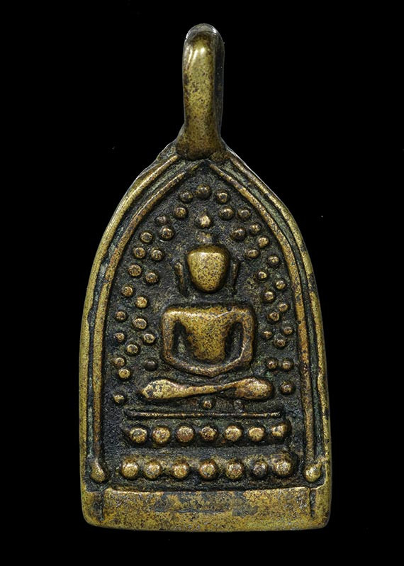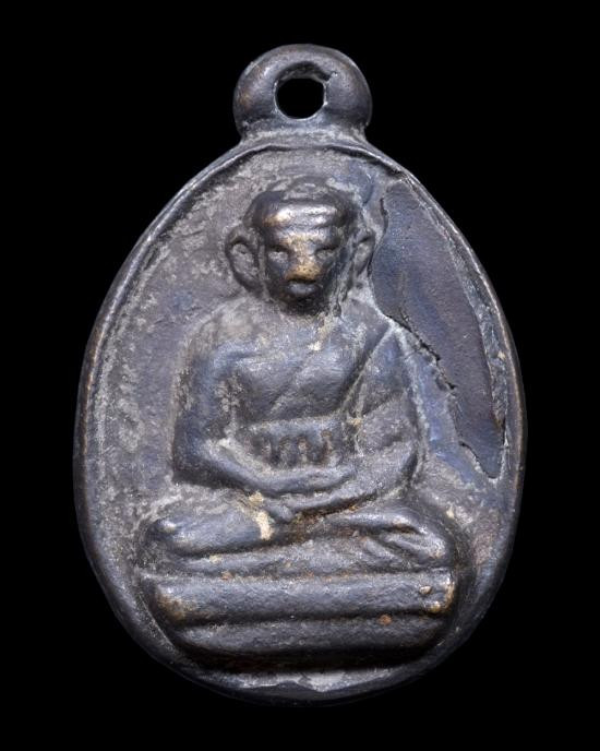 เหรียญหล่อ พิมพ์เศียรแหลม หลวงพ่อแก้ว วัดพวงมาลัย จ สมุทรสงคราม สร้างราวปี 2460 |