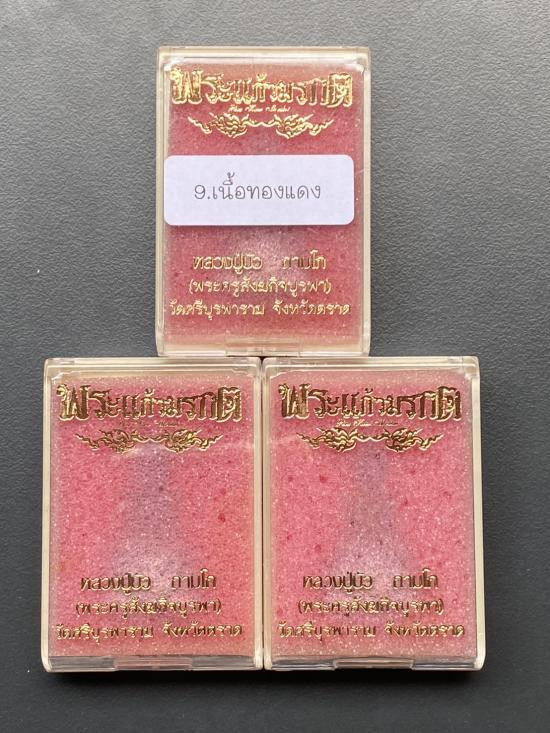 พระแก้ว หลวงปู่บัว เนื้อ ทองแดง สูง 3.4ซม 3องค์ |