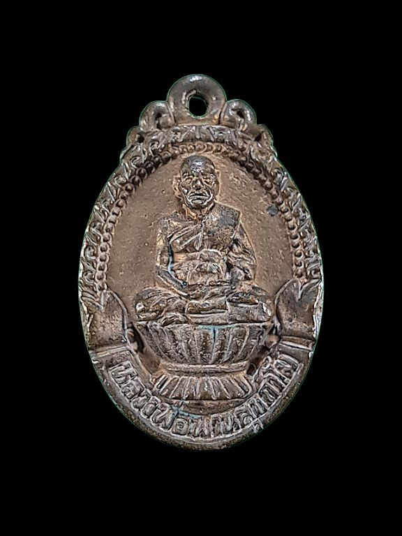 รูปหล่อปั้มหลวงพ่อขอม วัดไผ่โรงวัว หน้าหนุ่ม ปี2505 เนื้อทองเหลืองอุดกริ่ง |