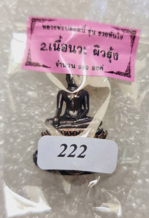 "หลวงพ่อปลดหนี้ พุทธศิลป์ถิ่นนครวาโย"พระกริ่ง สูง 3 ซม.หลวงพ่อปลดหนี้ วัดพระธาตุวาโย รุ่นรวยทันใจ เนื้อนวะ ผิวรุ้ง หมายเลข 222 พร้อมกล่องเดิม(ราคาจอง 1000 ครับ) |