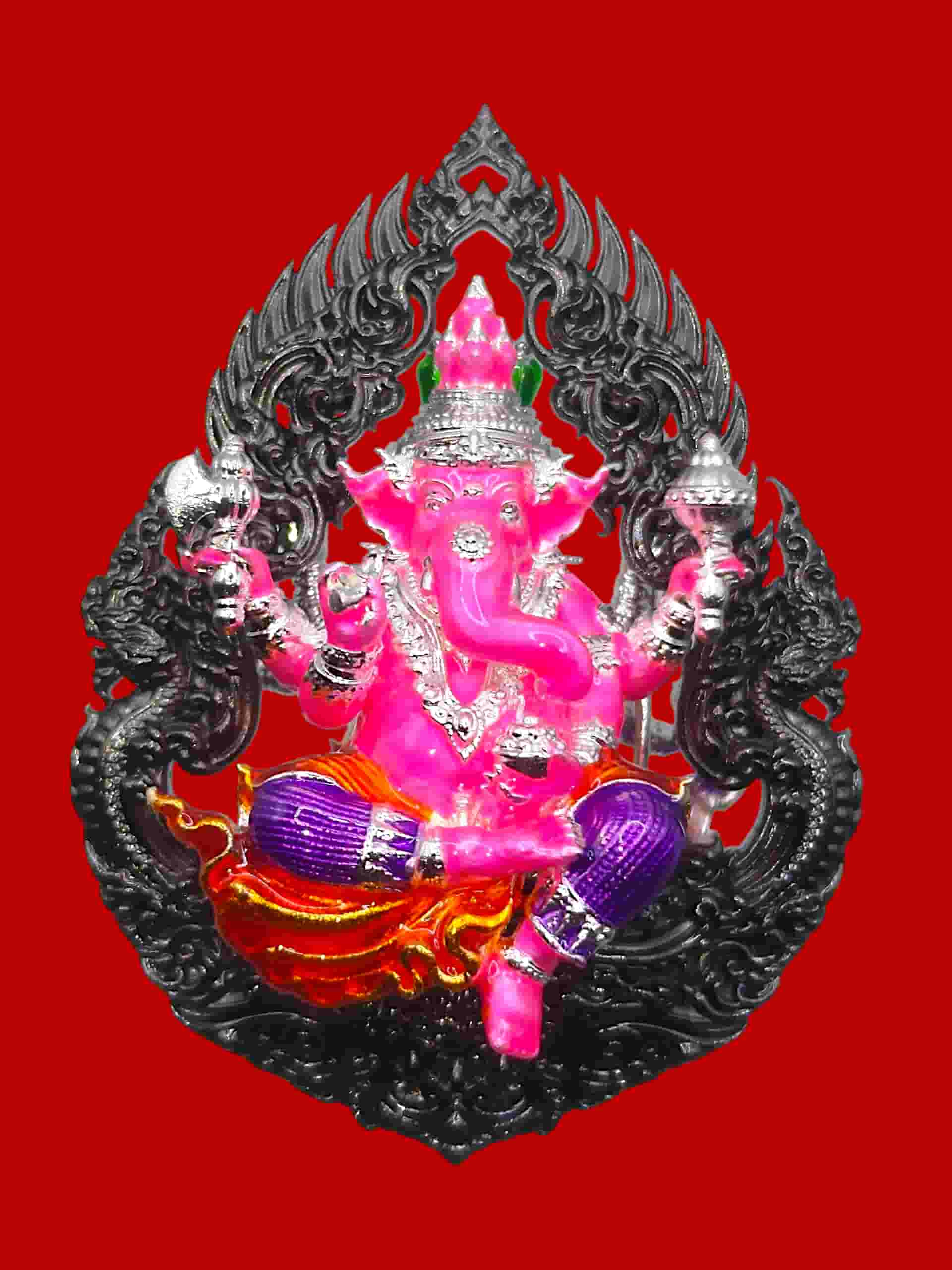 เหรียญพุทธศิลป์งามเลิศพระพิฆเนศหลังพรหม รุ่นเจ้าสัวจตุรถีมหาเศรษฐี วัดสมานรัตนาราม จ.ฉะเชิงเทรา ชุดนำฤกษ์ เนื้อบรอนซ์ผิวเงินลงยาชมพู No.๙ จำนวนสร้างแค่ 51 องค์ในโลก |
