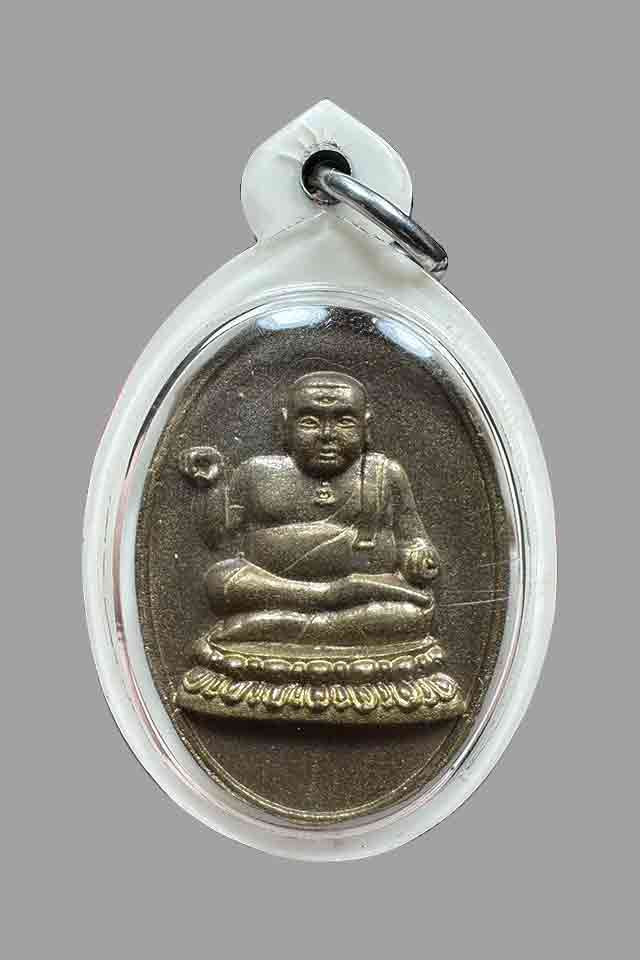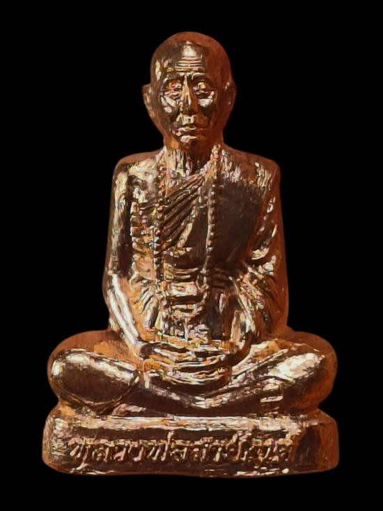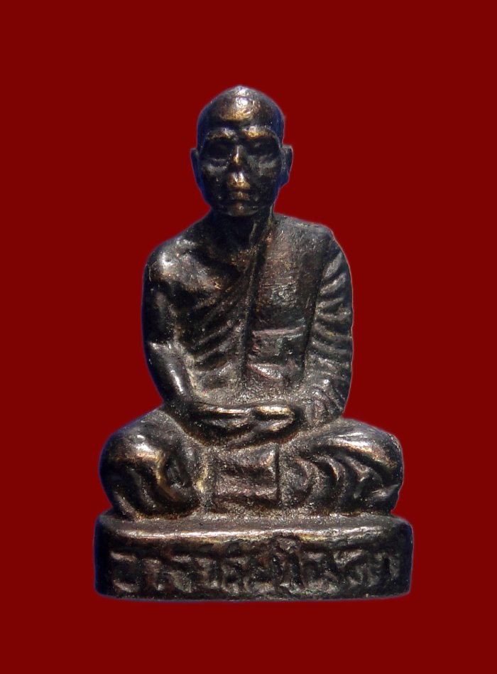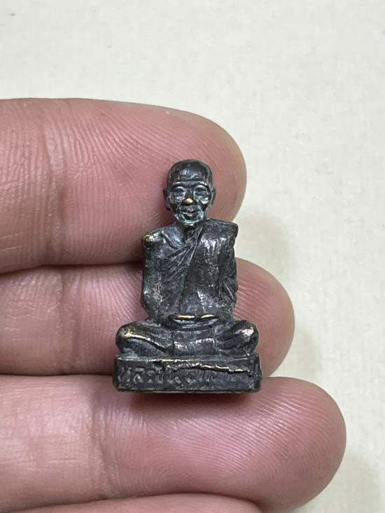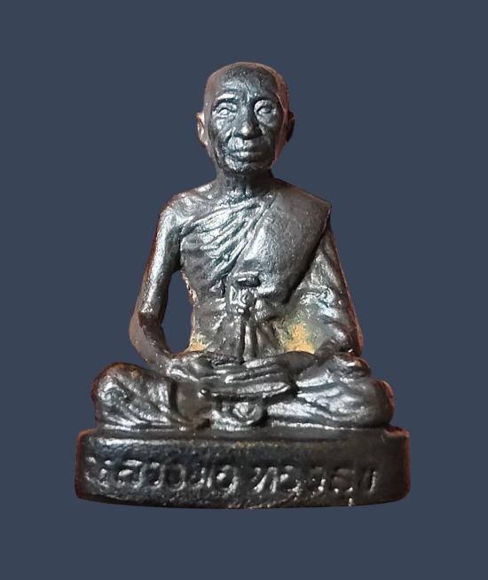 รูปเหมือนหล่อลอยองค์ หล่อตัน หลวงปู่ศรี ฐิตธัมโม วัดหลวงสุมังคลาราม จ.ศรีสะเกษ เนื้อทอแดงรมดำ ตอกโค๊ต |