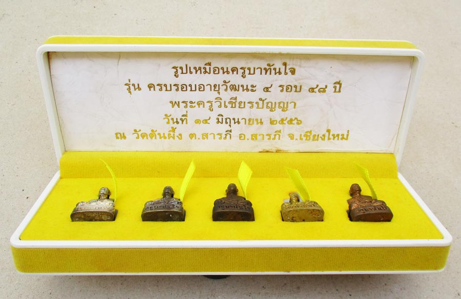 รูปเหมือนหล่อ พระครูวิเชียรปัญญา ครูบาทันใจ วัดป่างิ้ว จ.เชียงใหม่ รุ่น ครบรอบอายุวัฒนะ 4 รอบ 48 ปี พ.ศ.2556 ชุดกรรมการ 5 องค์ สภาพนอนกล่องเดิม !! |
