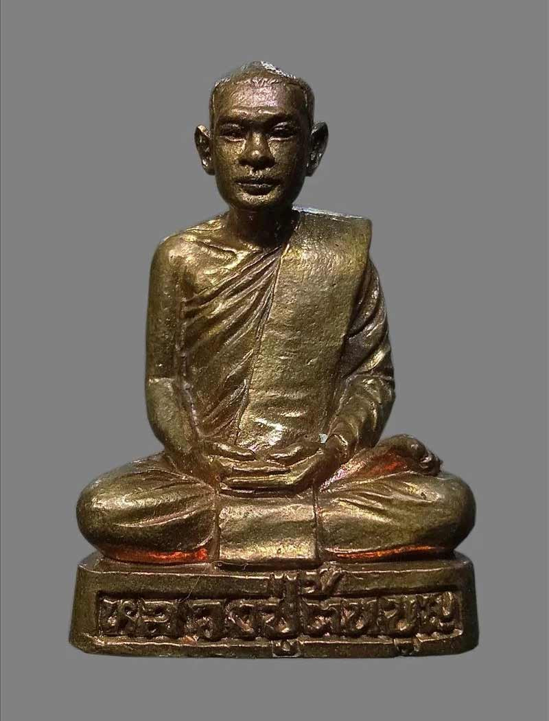 รูปหล่อ60 หลวงพ่อกวย กระไหล่ทอง +รมดำ สวยเดิมพร้อมกล่อง |