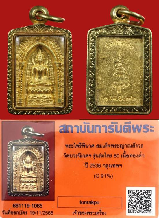 เหรียญหล่อพระไพรีพินาศเนื้อทองคำ สมเด็จพระญาณสังวร วัดบวรนิเวศฯ รุ่นร่มไทร 80 ปี 2536 กรุงเทพฯ (เลี่ยมกรอบทอง) |