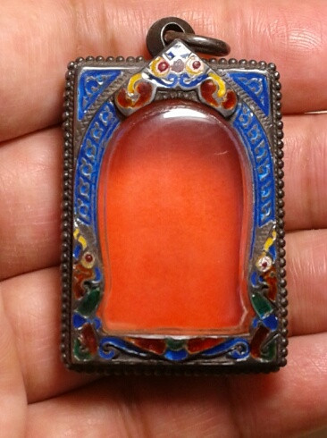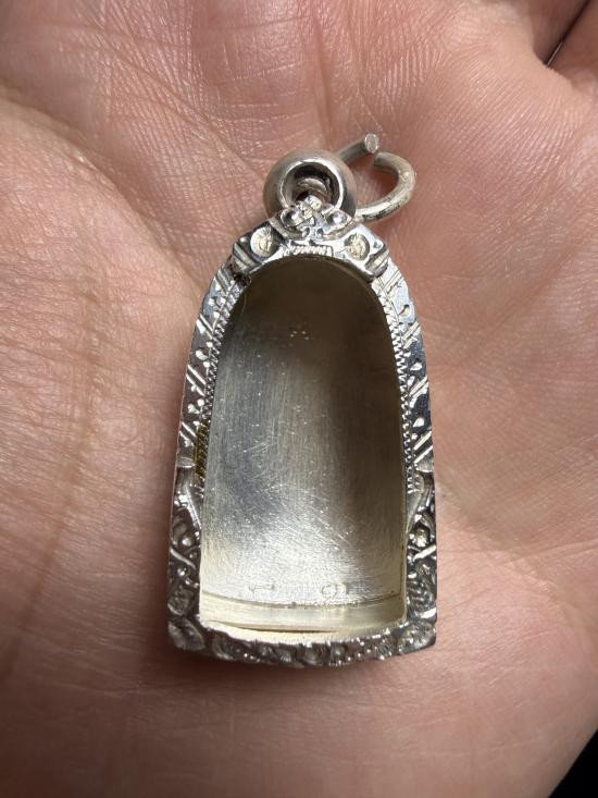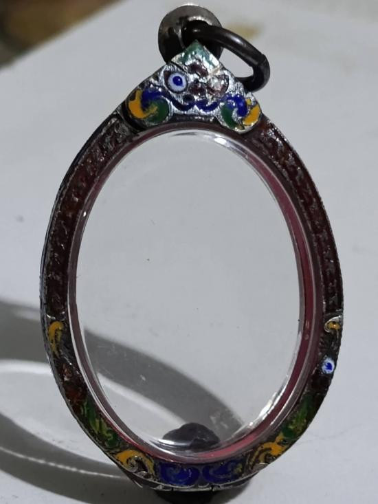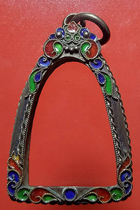 กรอบเงินลงยา มือ2 ใส่หลวงปู่ทวดเนื้อว่าน /พระรูปหล่อรูปเหมือน เคาะเดียว |