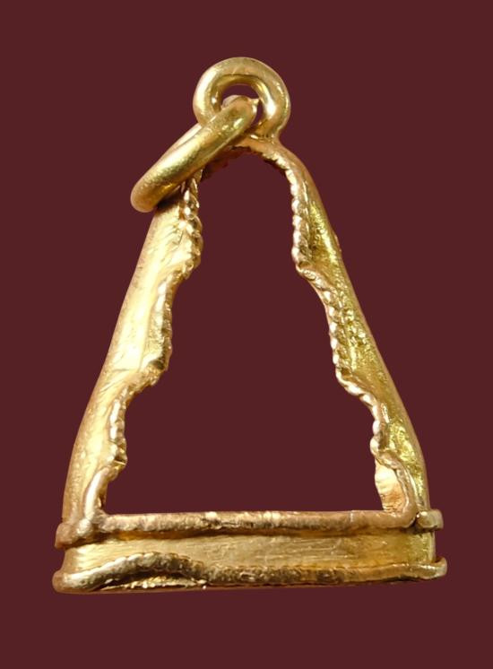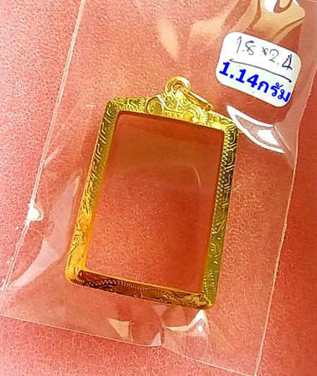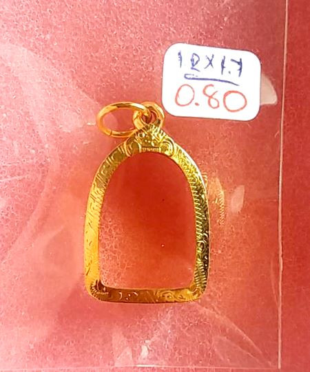 กรอบทองมือสอง ใส่พระกริ่ง พระชัย รูปหล่อ เนื้อดิน หรืออื่นๆทั่วไปที่ไกล้เคียง หน้าจอกว้าง 1.8 ซม., สูง 2.7 ซม. น้ำหนัก 3.75 กรัม เคาะเดียว |