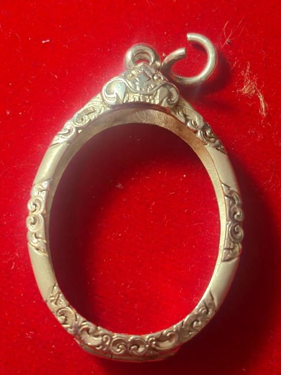 กรอบทองมือสอง ใส่เหรียญหลวงปู่ทวดรุ่น2,4 และเหรียญรูปไข่ทั่วไปที่ไกล้เคียง หน้าจอกว้าง 2.35 ซม., สูง 2.90 ซม. น้ำหนัก 1.95 กรัม เคาะเดียว |
