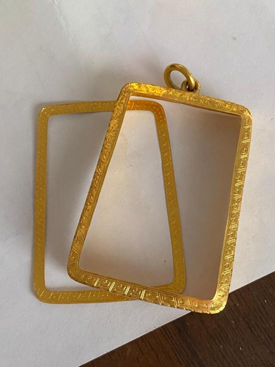 กรอบทองเสมา 2 หน้าเก่าโบราณ 73.46%หนัก3.74กรัม |