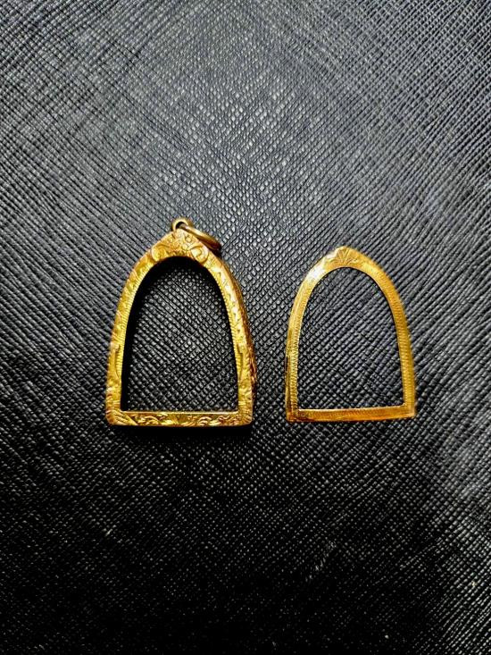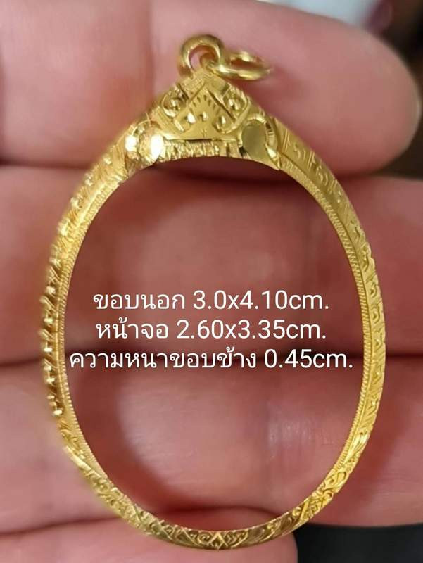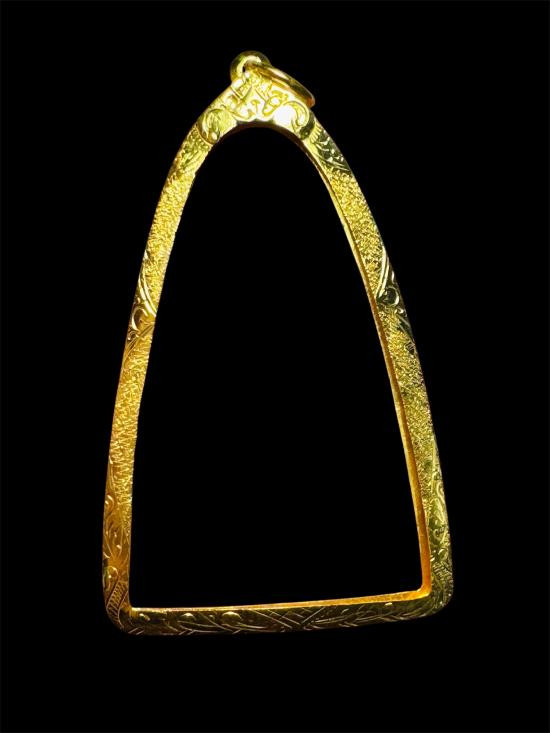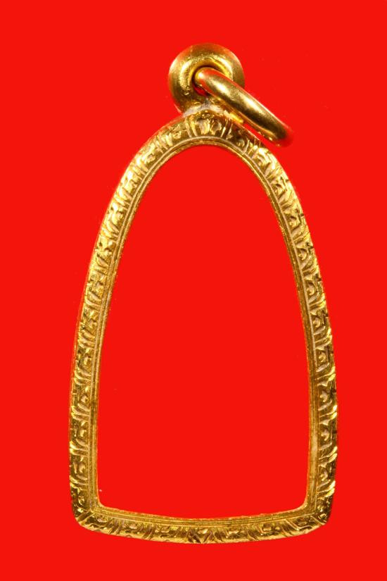 ***วัดใจ ***กรอบทองคำมือสอง แกะจากพระ ไม่เคยแขวนใช้งาน พร้อมบัตรรับรองทอง 70% น้ำหนักหลังทำความสะอาดแล้ว 1.3411 กรัม ขนาด 3.2 x 2.3 cm. |