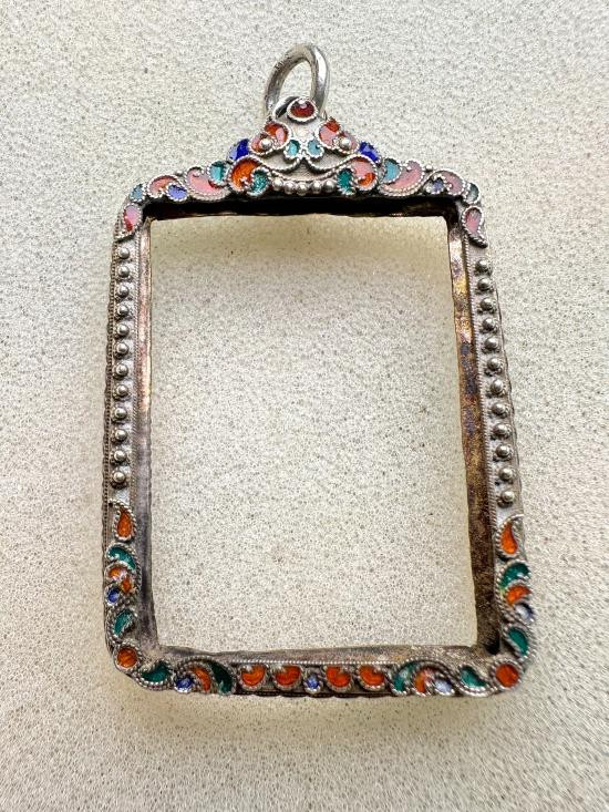 กรอบเงินลงยา ทรงสี่เหลี่ยม พร้อมใช้งาน น้ำหนัก 6.84 กรัม ขนาดวัดจากด้านในกรอบ มีรูปเพิ่มเติมด้านล่างค่ะ |