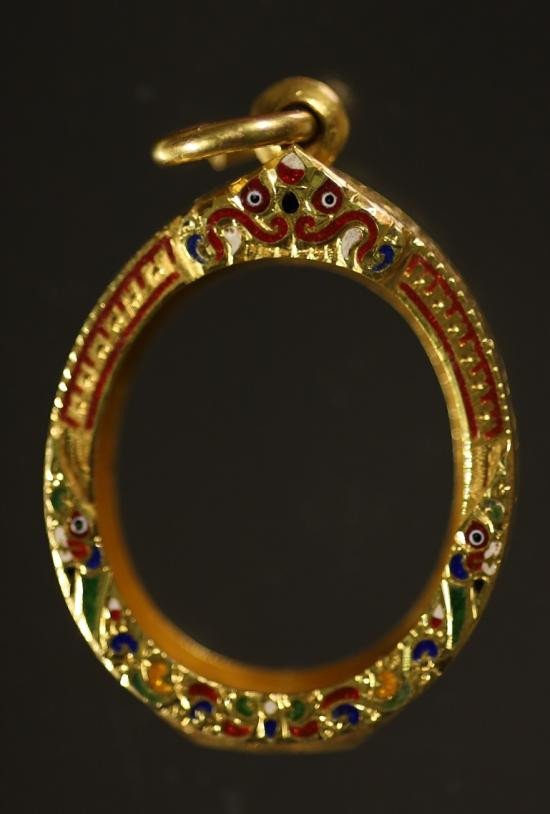 ***กรอบมือ2 ทองคำแท้ ลงยา สวยๆ*** ยกซุ้ม บน-ล่าง สำหรับ เหรียญรูปไข่ทั่วไป |