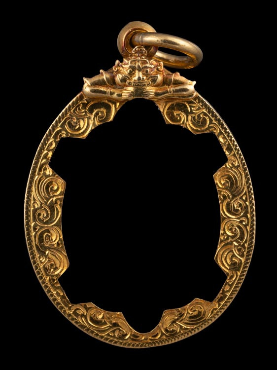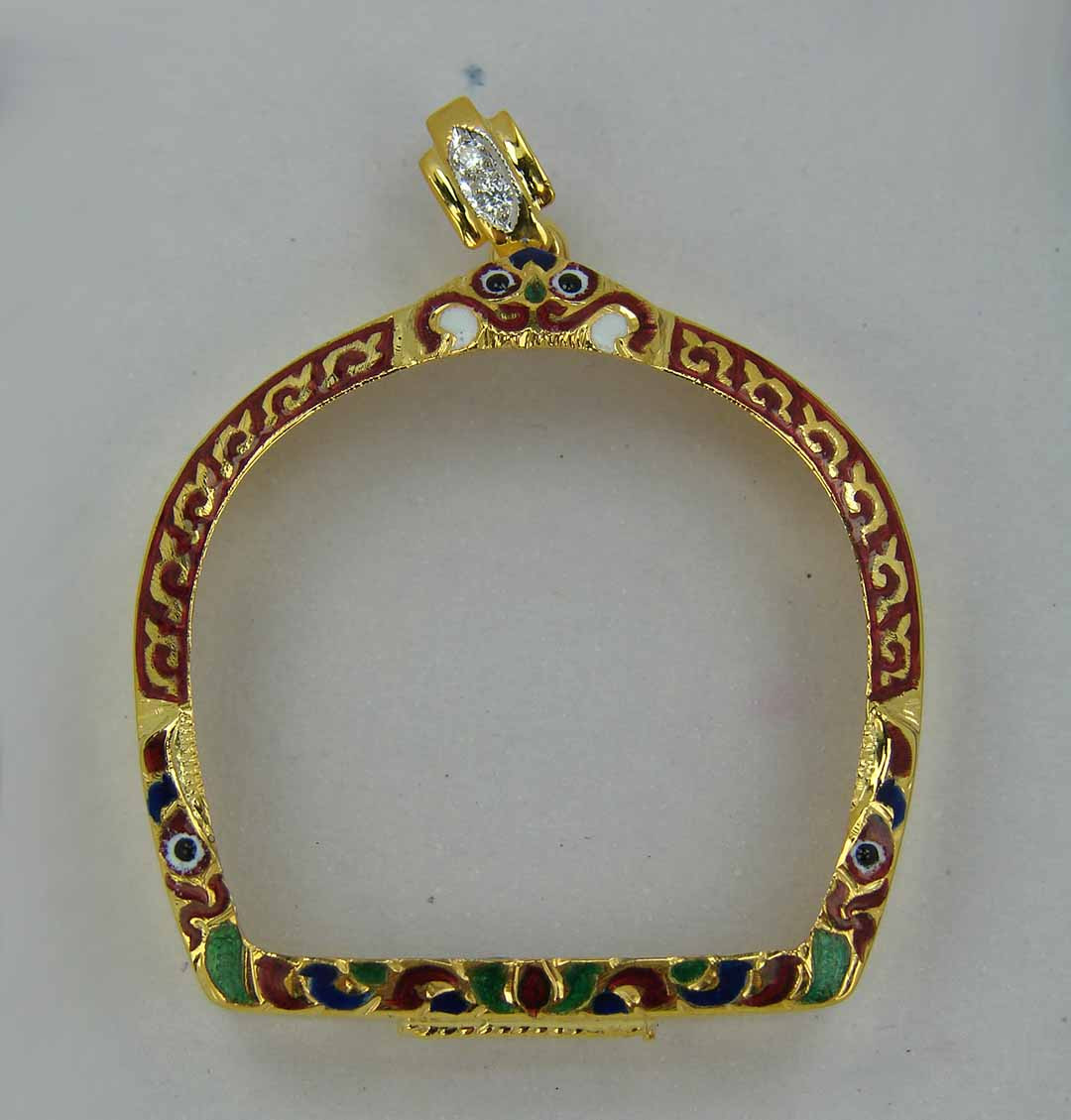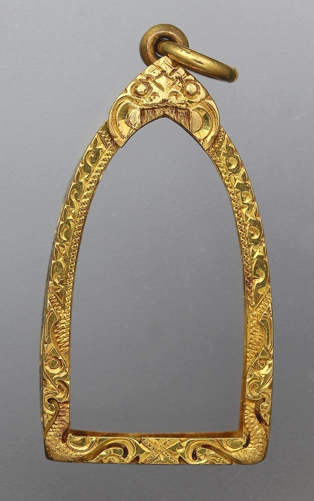 กรอบทองคำแท้ยกซุ้มสิงห์ ใส่เหรียญหัวแหวนหลวงปู่ทวด/หลวงพ่อปู่ศุข/เกจิอื่นๆจอใน1.2+1.4ซม..น้ำหนัก 0.82 กรัม |