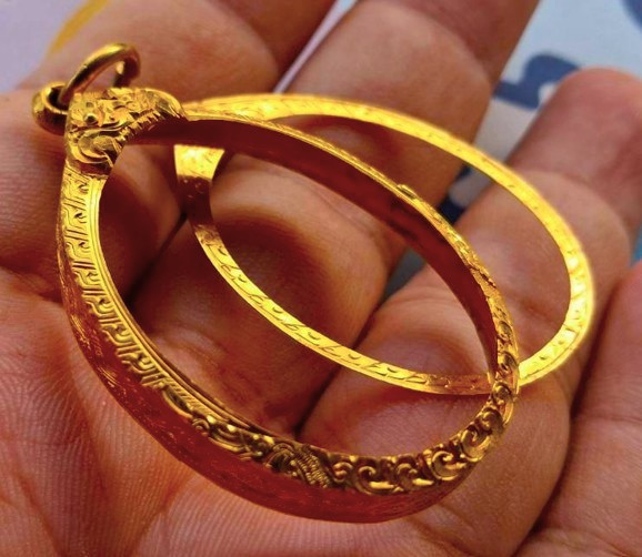 วัดใจเคาะเดียวกรอบทองคำผ่าหวายใส่เหรียญรูปหล่อเครื่องรางน้ำหนัก 3.7 กรัม |