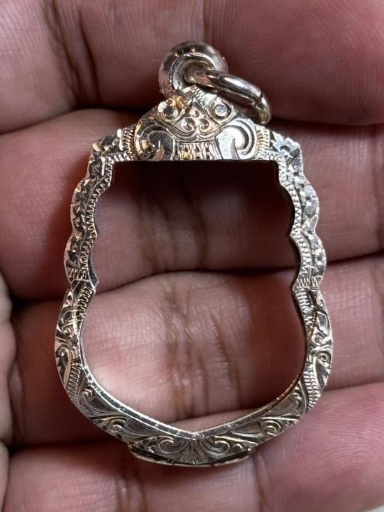 กรอบพระเนื้อเงินแท้ ยกซุ้มเป็นช้างงานแกะลาย หนัก8กรัม |