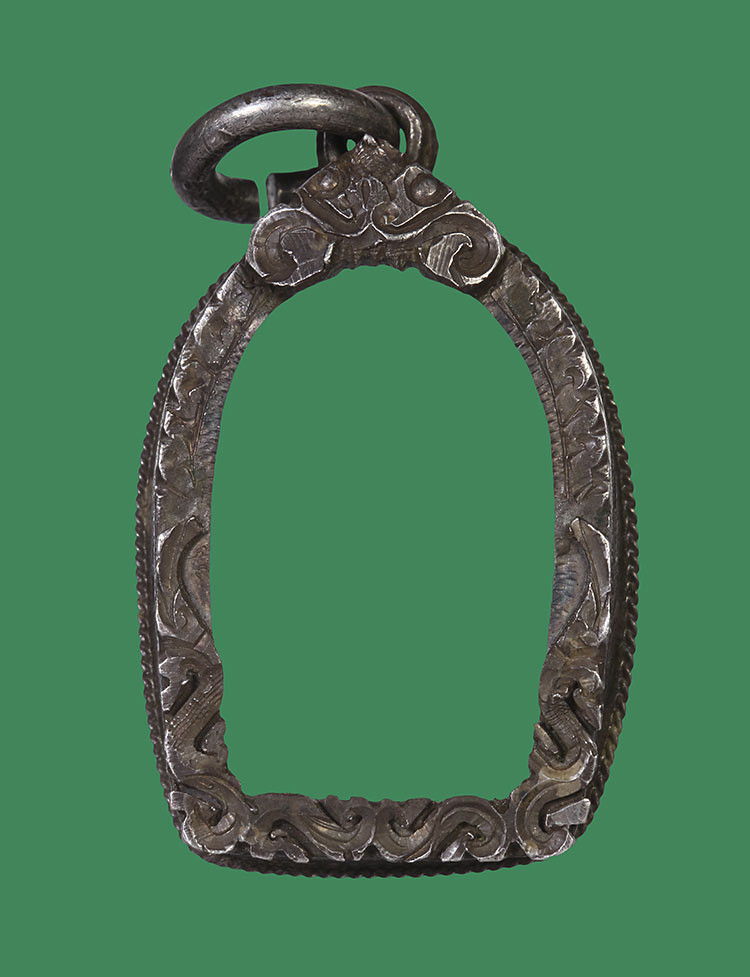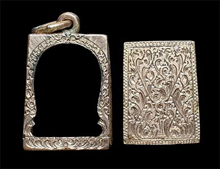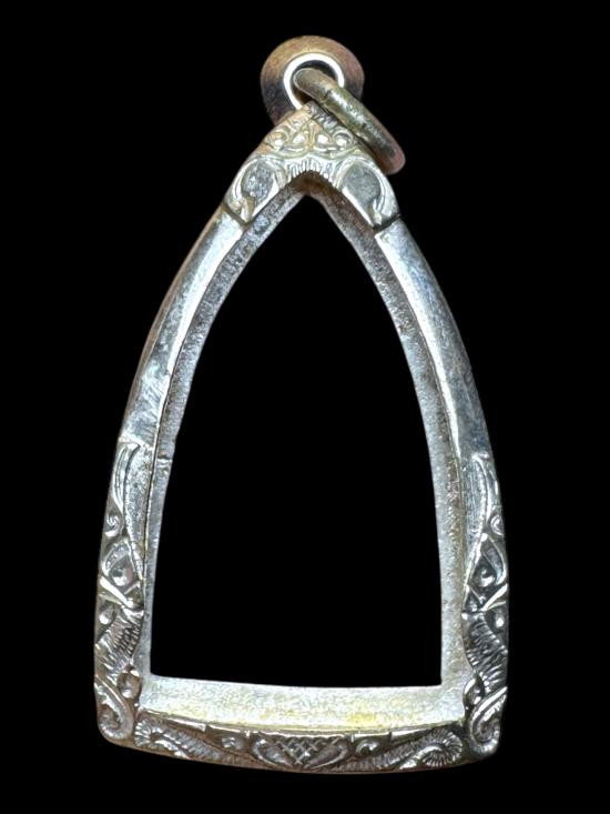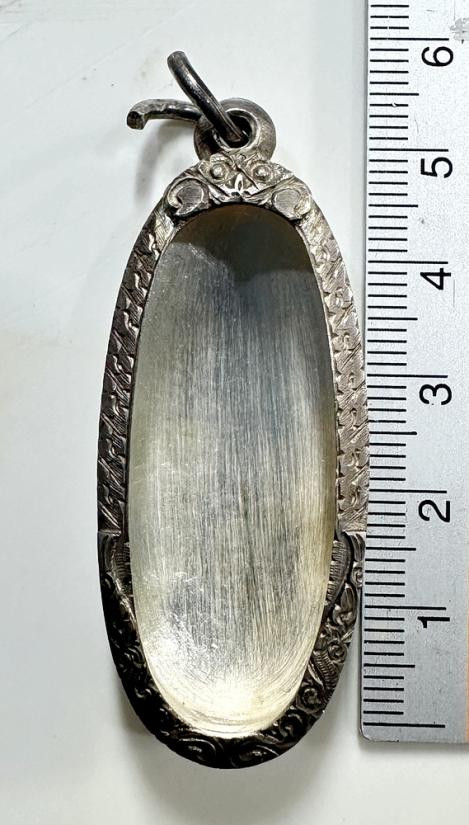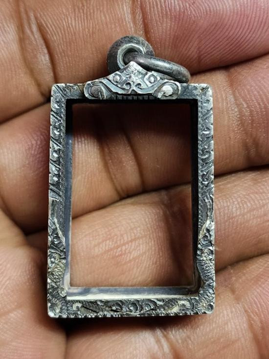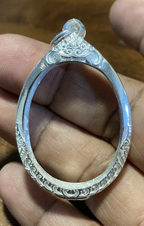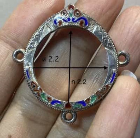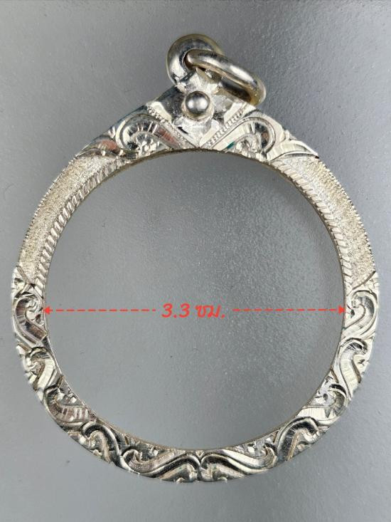 กรอบเงินแท้ทรงกลม ขนาดกว้าง 3.5 สูงวงใน 3.8 สูงรวมห่วง 4.0 ซม.ออกแบบแกะลายสวยงาม สภาพสวยไม่ฉีกไม่ขาดครับ |