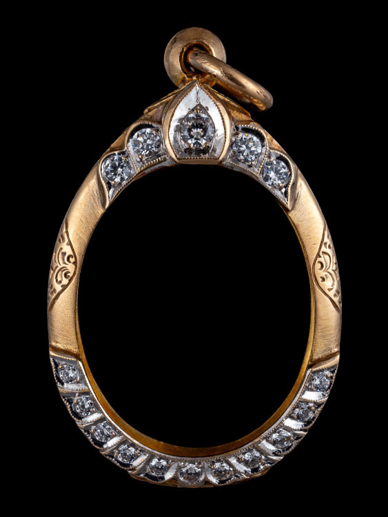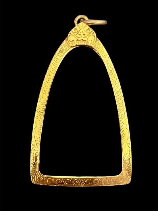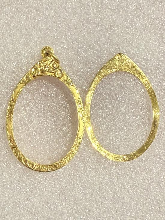 กรอบทองคำแท้ ใส่เหรียญเสมา มือสอง น้ำหนัก 2.2กรัม ยกซุ้มสวยงาม เดิมใส่เหรียญเสมา ลป.ทวด รุ่น3-เกจิคณาจารย์ทั่วไป + บัตรรับรอง G-PRA |