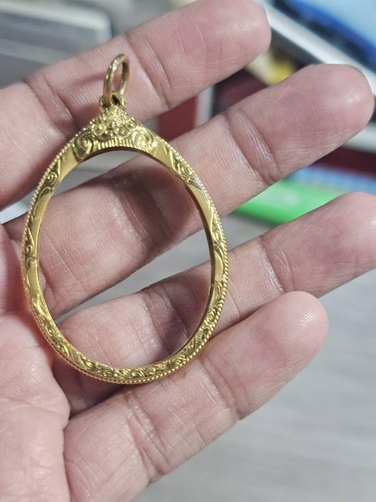 กรอบทองใส่เหรียญกลมมือสอง เปอร์เซ็นต์สูง 90% หนัก2.7กรัม |